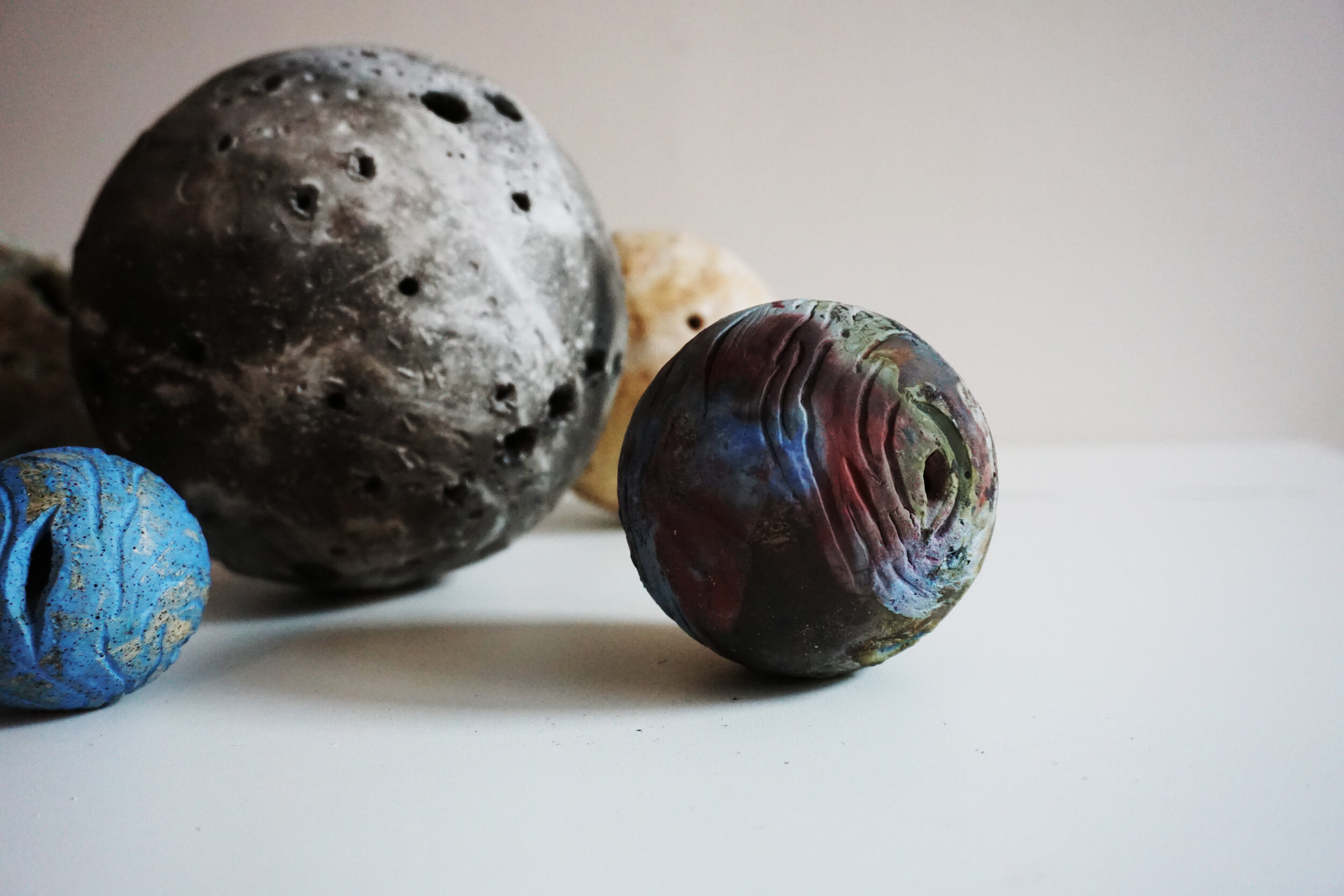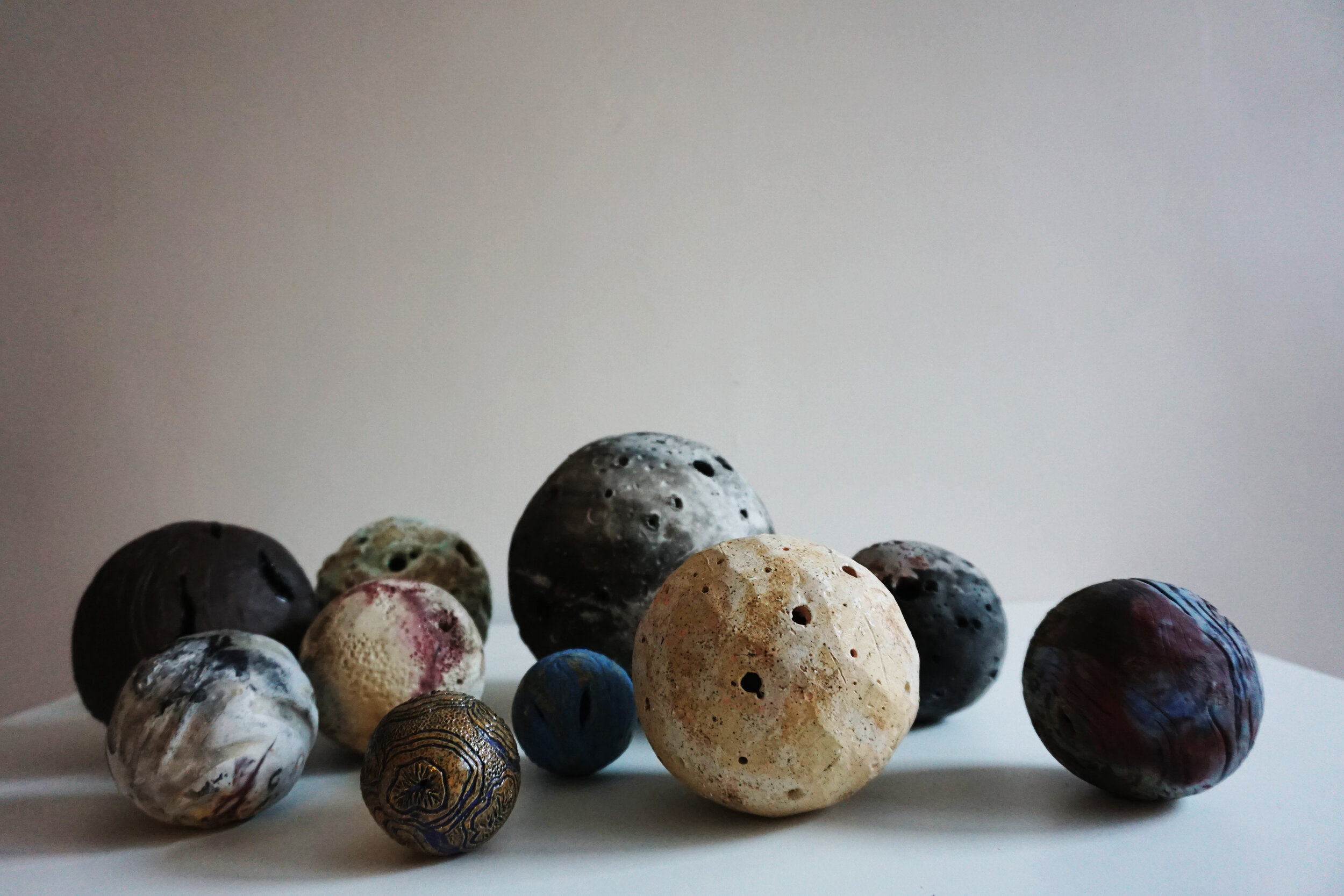 Each sphere is first formed by the same construction method, it is the control for the activity. The clay’s composition, mass, surface treatment, and firing process are altered in every iteration in an attempt to discover every possibility in the available materials.